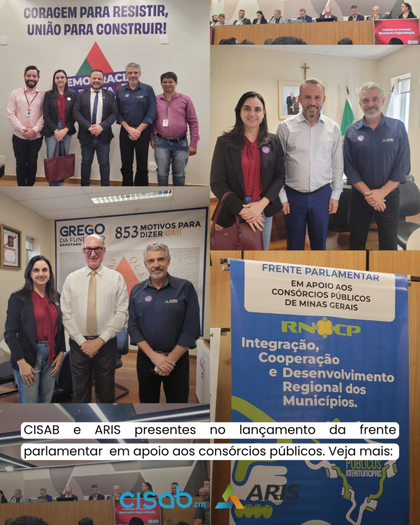 Nesta semana, o CISAB ZM (Consórcio Intermunicipal de Saneamento Básico da Zona da Mata de Minas Gerais) e a ARIS MG (Agência Reguladora Intermunicipal dos Serviços de Saneamento de Minas Gerais) participaram do lançamento da Frente Parlamentar em Apoio aos Consórcios Públicos de Minas Gerais.