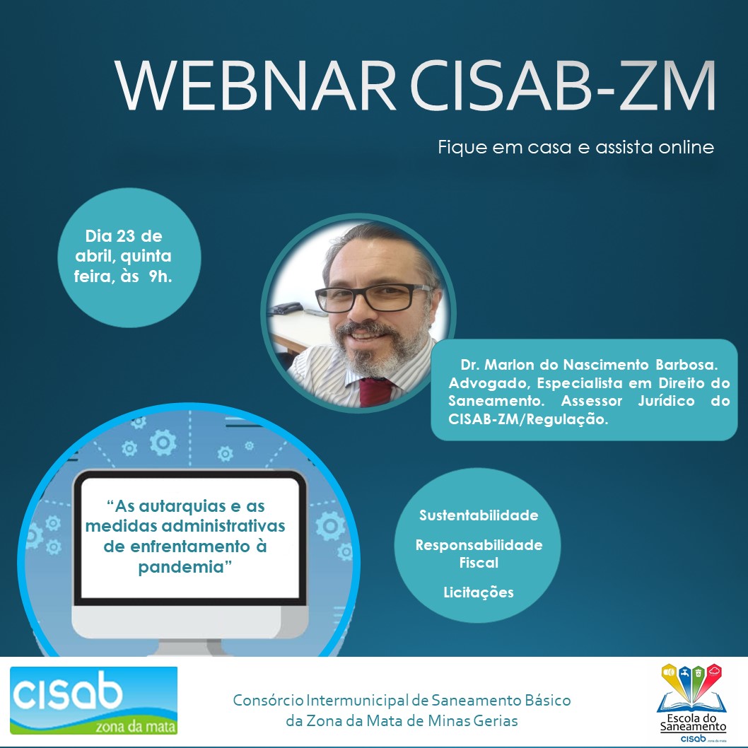A webinar será ministrada por Marlon do Nascimento Barbosa, assessor jurídico de regulação do CISAB ZM.